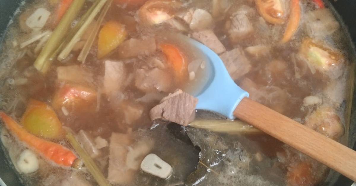 - Lalu tambahkan santan, air,kecap manis n garam. Masak sampai daging lembut.