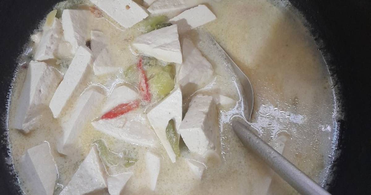 - Lalu masukan tahu, lalu sambil di aduk pelan agar air ya bisa mencapai tahu secara perlahan masak lagi sampai air bener2 menyusut setelah menyusut matikan kompor diamkan sampai dingin.